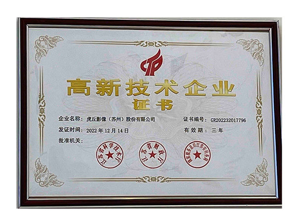 1月,虎丘影像(蘇州)有限公司設(shè)立于蘇州高新區(qū)鹿山路國(guó)家環(huán)保產(chǎn)業(yè)園